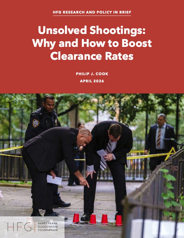 By Philip J. Cook April 2026 Approximately 75,000 people in the United States were shot by a criminal assailant in 2024, yet most of those shootings did not result in an arrest.In this HFG Research and Policy in Brief, Philip J. Cook, professor emeritus at Duke University, explores the gap between the minority of shootings that are solved and those that go unsolved.“There is a strong argument for improving police performance in investigating serious crimes of violence,” Cook writes in Unsolved Shootings: Why and How to Boost Clearance Rates. “What is at stake is public safety and the basic duty of the police to serve the public.” Cook examines the importance of arresting and prosecuting perpetrators of serious violence, the validity of “clearance rates” as a performance indicator for police departments, and what can be done by police to increase the success rate for criminal investigations—citing examples from Chicago, Denver, and other cities. Read or download the report (PDF)